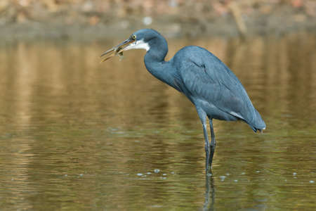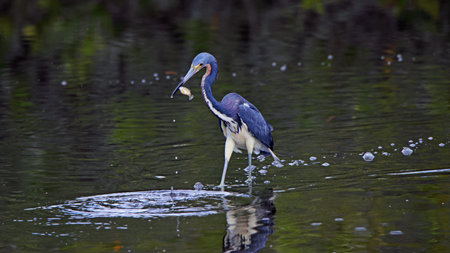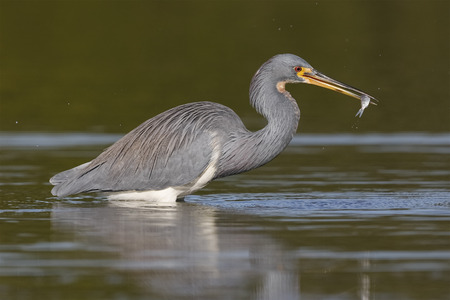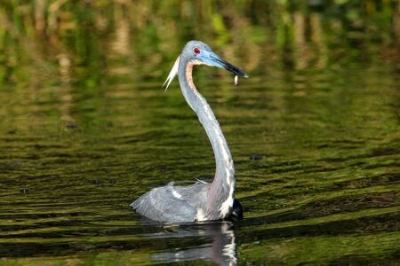 Tri-colored heron with catch, close up. Latin name - Egretta tricolor.