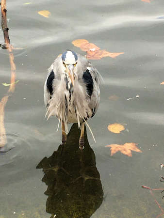 Vancouver, America - August 18, 2019: Grey heron at Vancouver port, Vancouver, America