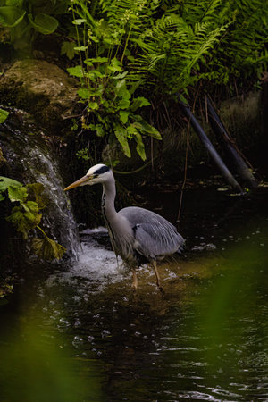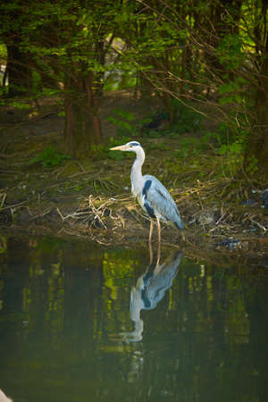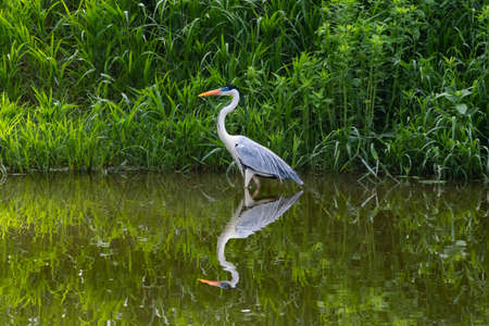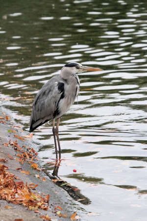 Gray Heron (Ardea cinerea) standing in a pond in Zurich, Switzerland