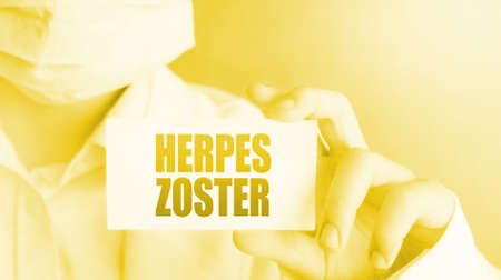 Doctor holding herpes zoster card in hands. Healthcare concept.