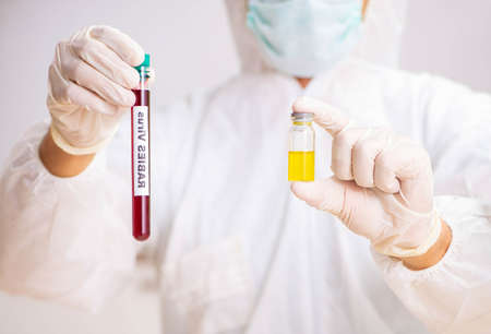 Hepatitis test, Blood in the test Tube. The concept of Medicine and Analysis.