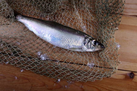 Herring on net. Fresh fish catch