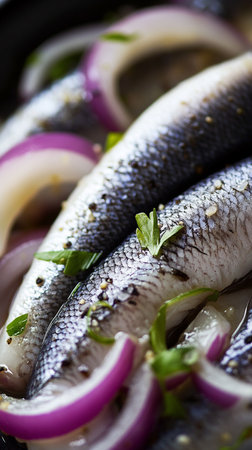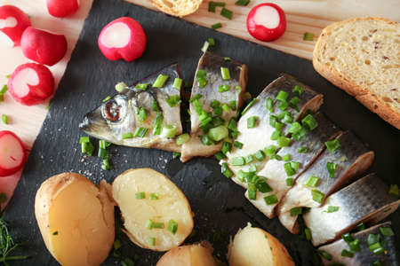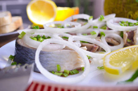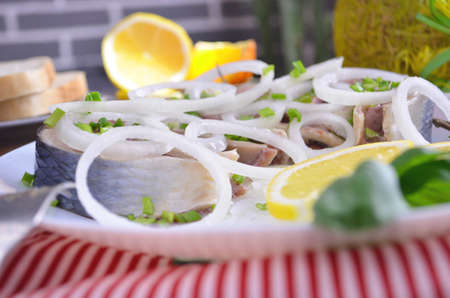 Baltic herring, appetizer and sliced close-up