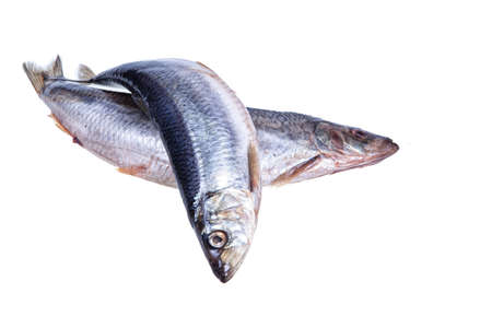 Raw herring isolated on white background. Fish isolated