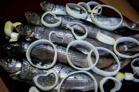 Salted river fish served with onions. The view from the top.
