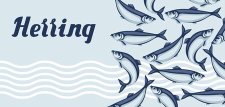 Background with herring fish. Pacific sardine. Seafood illustration.