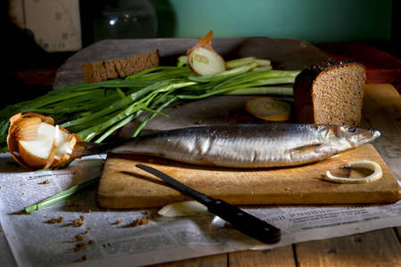salty herring on a board by diagonal