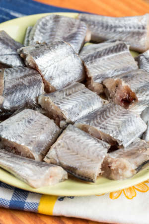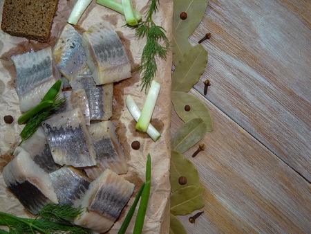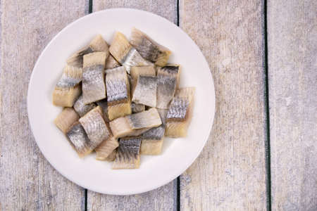 Seafood - salty fish herring ready to eat.