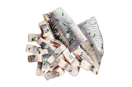 Pieces of herring on an isolated studio background