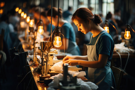 Fabric workers on the production line. Mirthful workers bring a sense of fulfillment to the production line.