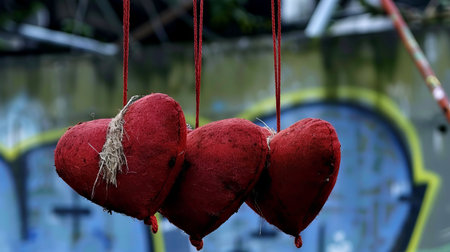 Colorful Hanging Wooden Hearts Decoration, Love, Romance, and Valentine s Day Background