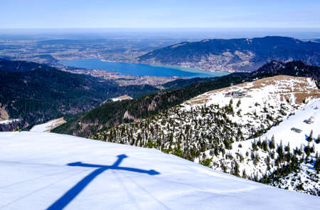 Great view from the mountain Brauneck near Lenggries , Germany over the Alpes