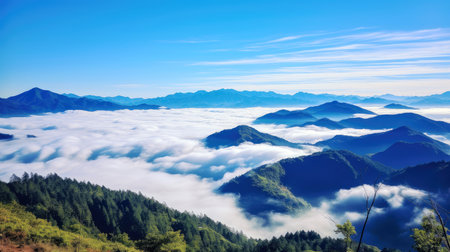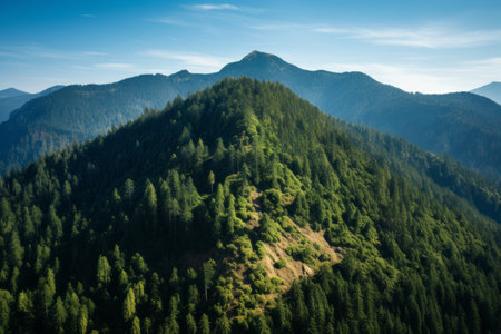 Enchanting Aerial Immersion: Capturing Nature's Majesty on a Tree-Covered Mountain
