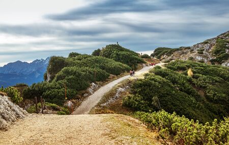 Panoramic view over the German bavarian Alps - Hiking on the ridge between two tops. The perfect place for rest while hiking. Impressive place for outdoor sports or activities.