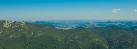 Sunset in the mountains. Panoramic view of the Carpathian Mountains.