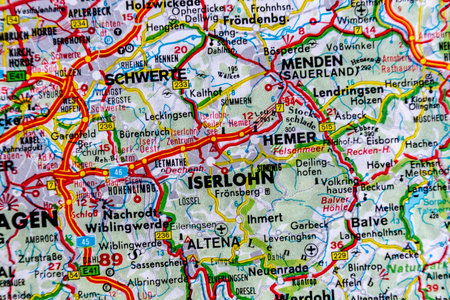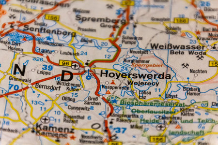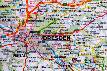 RIESA/GERMANY - July 23/2018: Photo of cityscape with houses, asphalt road and trees on a sunny day