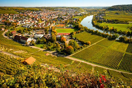 Vineyard overlooking the river Neckar, Landscape of Hessigheim, Germany