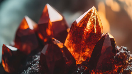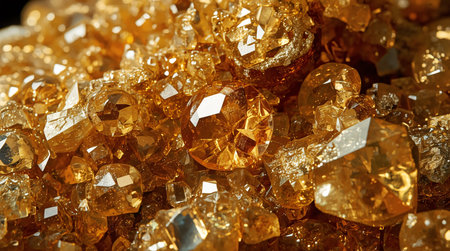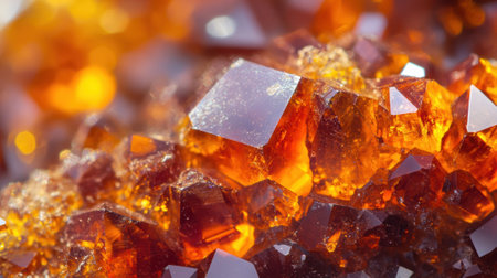 This captivating close-up features a vibrant amber crystal showcasing its intricate facets and glowing warm hues. Ideal for nature enthusiasts and art lovers.