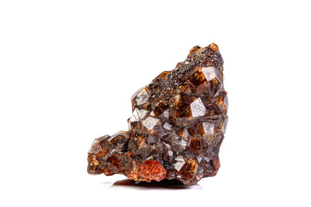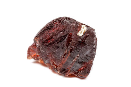 macro mineral stone Spessartine, orange, red garnet with quartz on white background close-up