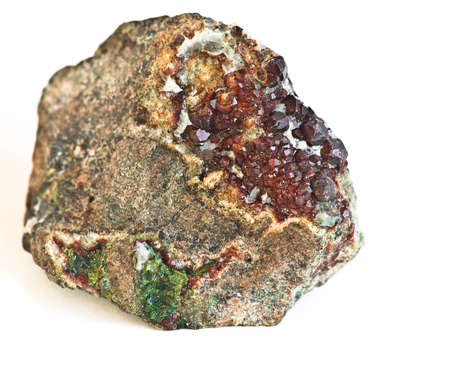 Garnet stone crystal inside granite and quartzite rock isolated on black. Found in Kem, Karelia, Russia. For geology mineralogy websites, stone collection catalog, Natural Science museum wall chart