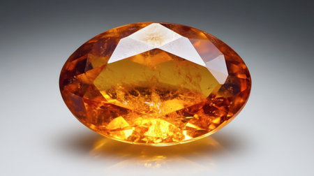 A striking orange gemstone featuring brilliant facets that reflect light beautifully, perfect for jewelry designs, artistic displays, or luxury marketing.