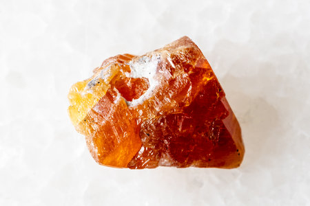 sample of raw scheelite mineral on white marble background close up from Middle Urals, Russia