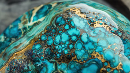 Chrysocolla is a hydrated copper cyclosilicate (Сu, Al)2Ð2Si2O5(ОÐ)4H2O. Cyan (blue-green) crystal. Macro. Beautiful fantastic background for successful business projects and other Your variant.