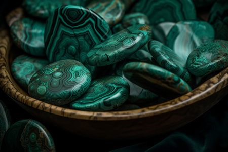 Malachite stones dish bowl. Ball stone group artistic mix. Generate Ai