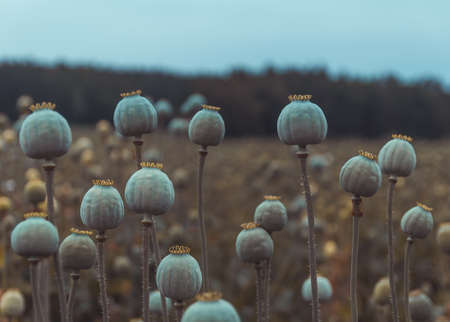 Poppy seed capsules in a spice garden on Swedish Baltic sea island Öland. The annual Harvest Festival at the end of September and beginning of October is an event attracting many tourists.