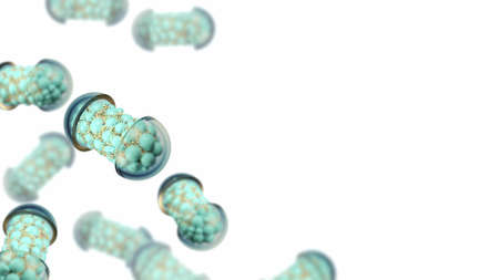 Colorful abstract chaotic structure balls inside the capsule, pharmacy and medical concept 3d