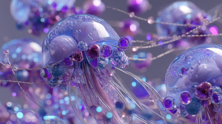 Explore a mesmerizing underwater scene featuring vibrant jellyfish with intricate bubble details. The ethereal colors create a dreamlike atmosphere, showcasing the beauty of marine life in an abstract form.