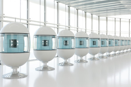 Sleek, modern seating pods are arranged in a bright, spacious interior, showcasing innovative design.