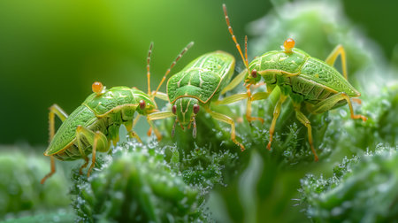 bed bugs in the garden on green leaf pests vegetable garden