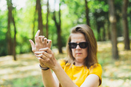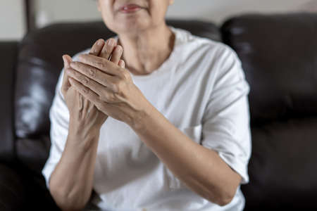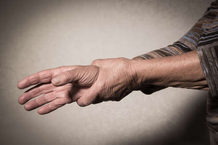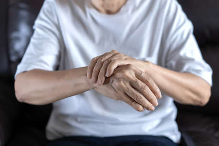 Close up of senior women hand suffering wrist pain