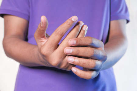 Women with beriberi on hand or finger,Disease causing inflammation of the nerves,Close up