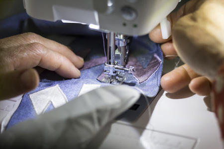 Close-up of a seamstress on her sewing machine