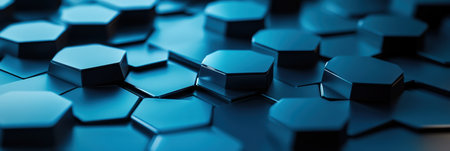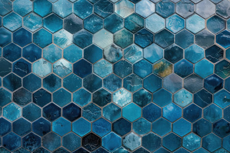 Abstract background of blue hexagonal tiles with varying shades and textures