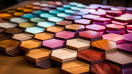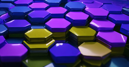A colorful array of hexagonal blocks arranged in a gradient, representing vibrant abstract art and modern design. Perfect for backgrounds and creativity themes.