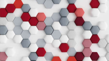 Red white abstract background with hexagons. 3d rendering, 3d illustration.