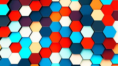 Technology hexagon colorful abstract model background, Many clean technical geometric hexagons as a wave, optical Illusion, computer generated 3d illustration