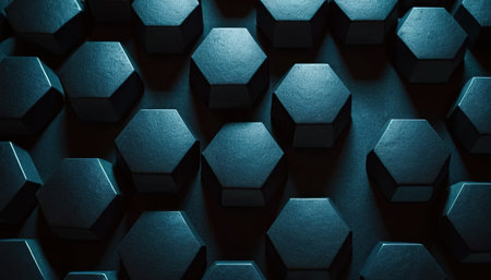 Close-up of a dark geometric pattern with textured hexagonal shapes, creating a modern and sophisticated abstract design.