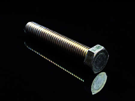 Metric hexagon head screws, Fasteners to the workshop. Reflection in black glass