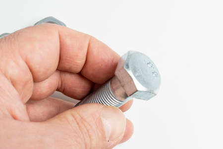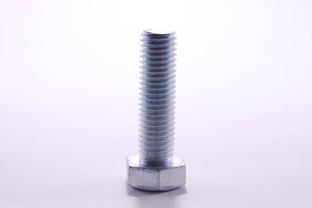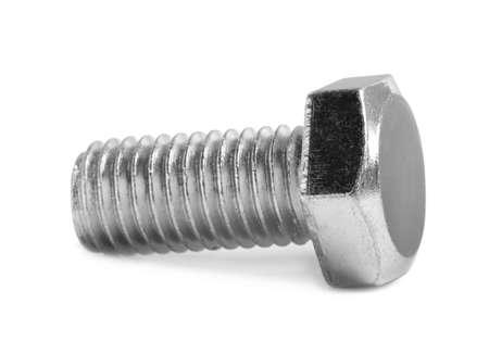Photograph of a gray metal screw, a common piece in hardware stores anywhere in the world, used to fix any home or mechanical structure, isolated on a white background. used in mechanics and vehicles, isolated on a white background.
