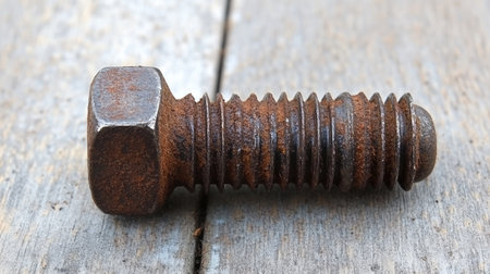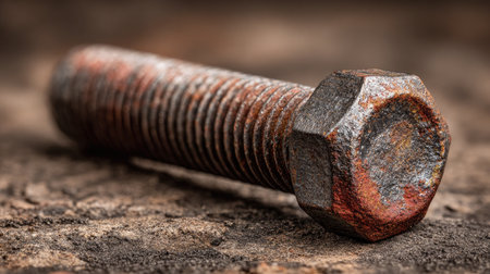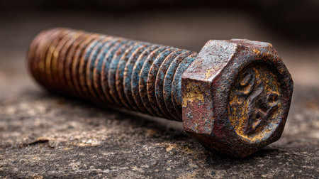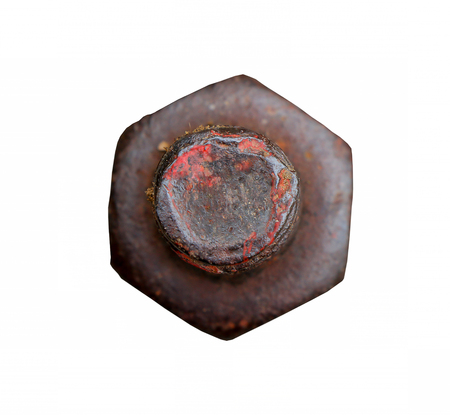 Rusty metal bolt. Mechanical component worn out by time and covered in rust isolated on white background.