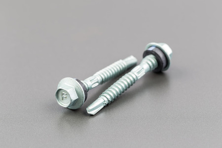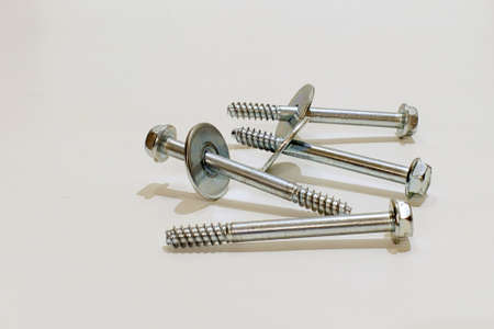 Macro shooting. self-tapping screws with a turnkey head on a white background.