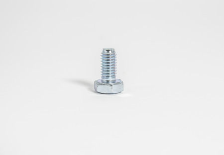 Close-up shot of Isolated metallic screws on white background