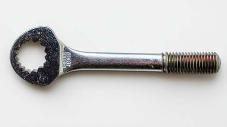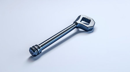 A sleek and shiny metal tool resting on a modern blue and white background. This image captures the essence of craftsmanship and precision in mechanical repair and industrial applications.