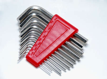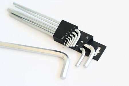 Set of hex keys close-up on a white background.