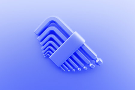 3D illustration of a blue tool allen key hand tool isolated on a monocrome background. 3D render and illustration of repair and installation tool