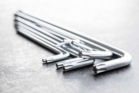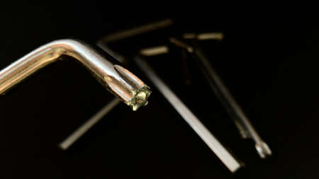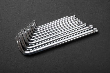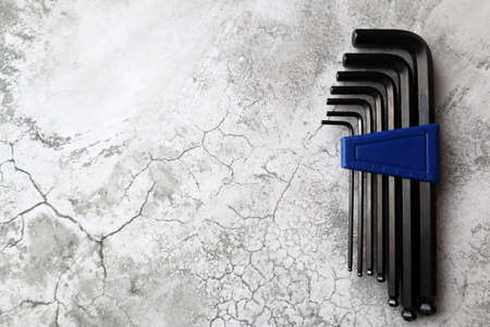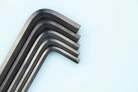 Hex Wrench Against Background. Set of hexagonal keys. Close-Up. Copy space